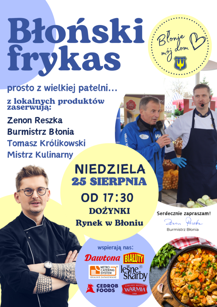 Burmistrz Błonia Zenon Reszka i mistrz kulinarny Tomasz Królikowski zapraszają na Błoński Frykas!