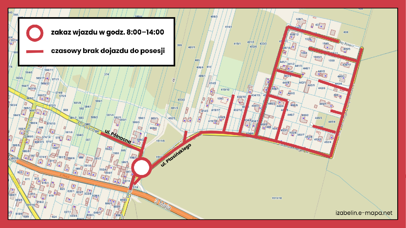 Jutro (piątek 24 kwietnia), w związku z prowadzoną przez Zarząd Dróg Powiatowych przebudową drogi ul. 3 Maja, planowane jest czasowe, całkowite zamknięcie wyjazdu z ul. L. Ptasińskiego i ul. Północnej (Truskaw-Helenówek) w kierunku ul. 3 Maja na czas prac związanych z wykonaniem nawierzchni asfaltowej.