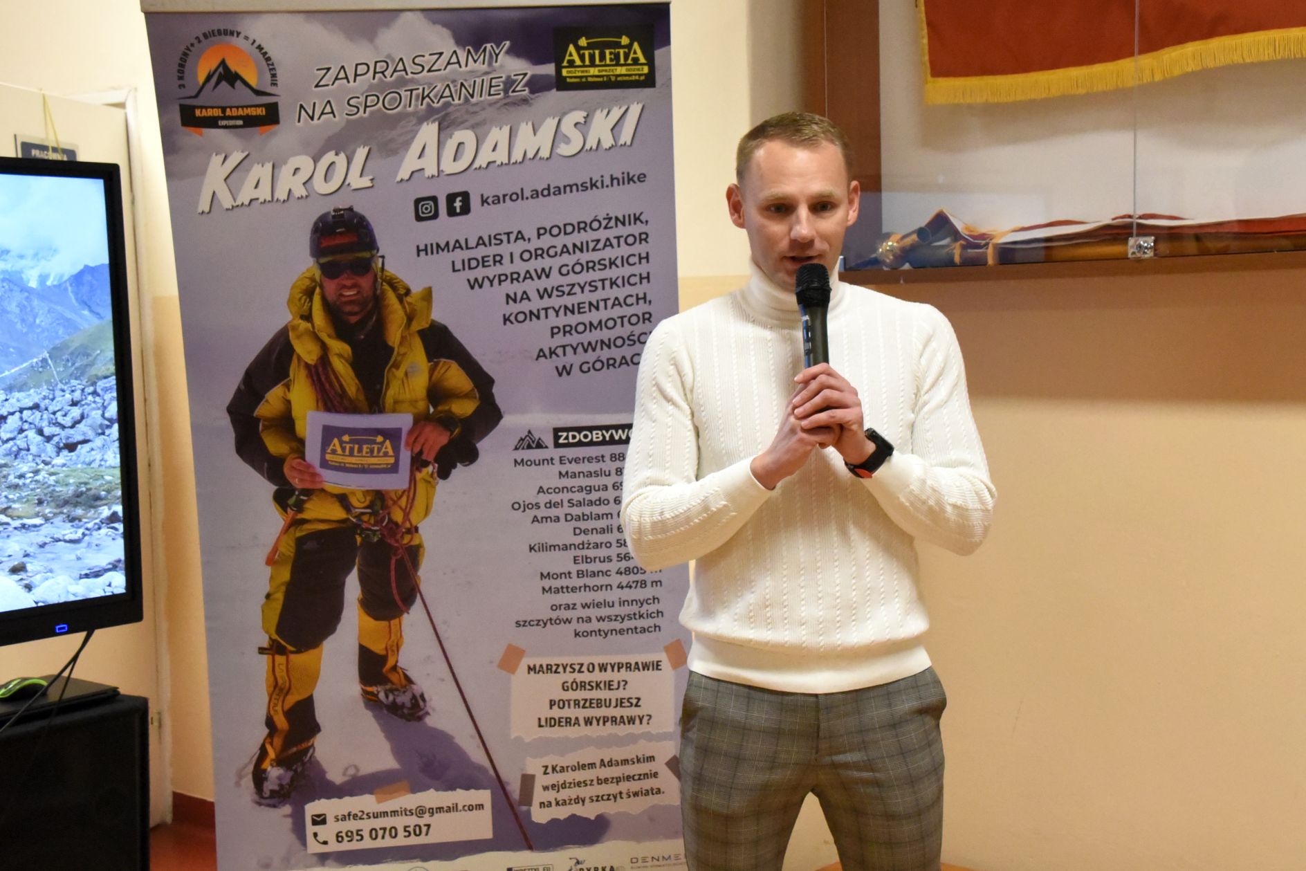 KAROL ADAMSKI, podróżnik i himalaista, mieszkaniec gminy Gózd był gościem Publicznej Szkoły Podstawowej w Kłonówku-Kolonii. Kto przyszedł, ten na pewno nie żałował, bo było to bardzo interesujące spotkanie. Pan Karol dzielił się wspaniałymi opowieściami – między innymi mówił, jak to jest wejść na najwyższą górę świata – Mount Everest. Przypomnijmy, że w maju tego roku udało mu się stanąć na szczycie nazywanym Czomolungma.