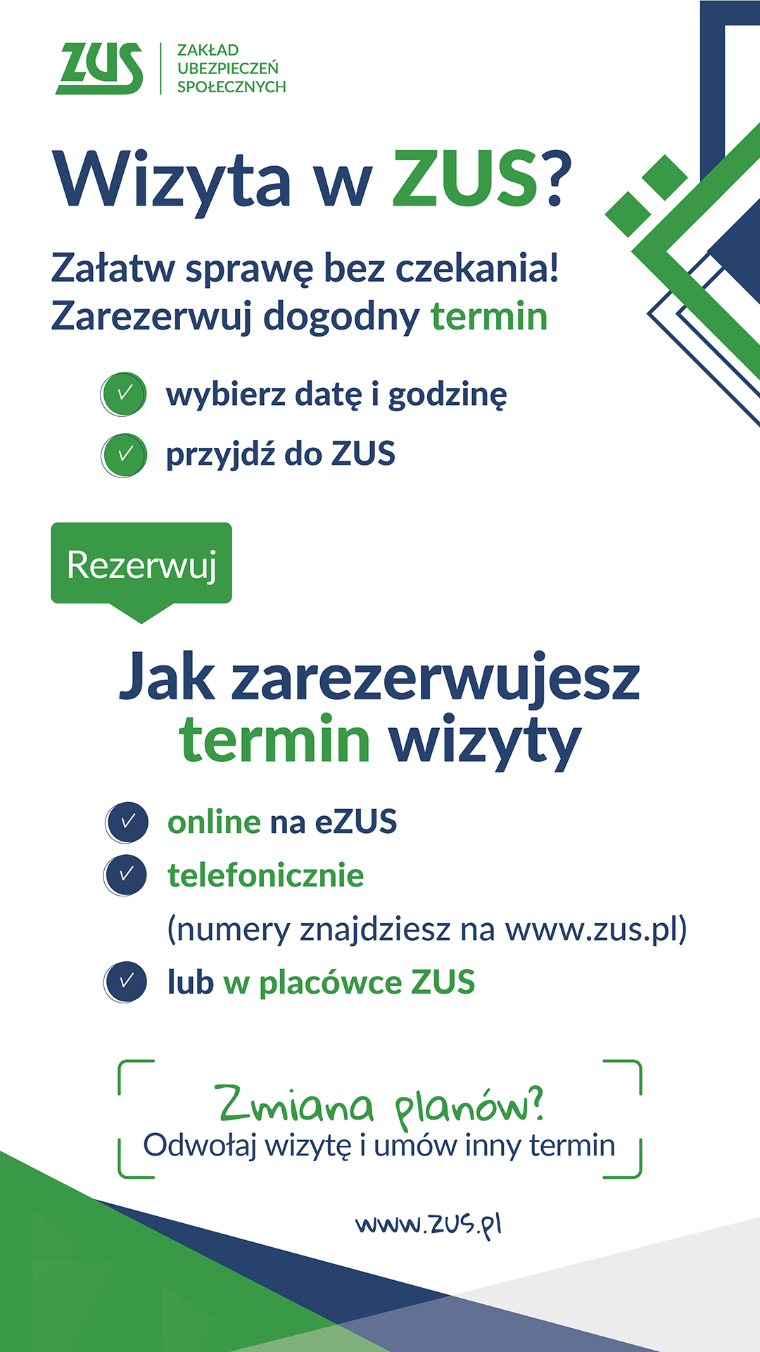 Gdy zarezerwujesz wizytę w ZUS, oszczędzisz czas i masz gwarancję sprawnego załatwienia spraw,