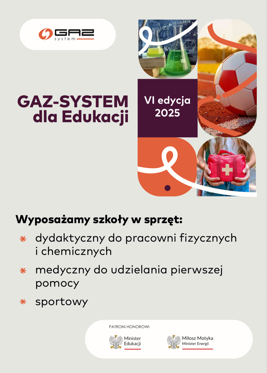 Program „GAZ-SYSTEM dla Edukacji” to inicjatywa – organizowana już po raz szósty przez GAZ-SYSTEM w wielu lokalizacjach w kraju – skierowana do szkół podstawowych w gminach i miastach, na terenie których spółka prowadzi kluczowe inwestycje w krajowym systemie przesyłowym gazu. Dzięki programowi „GAZ-SYSTEM dla Edukacji” spółka wspiera rozwój pasji naukowych i sportowych uczniów, a także wzmacnia edukację zdrowotną w zakresie udzielania pierwszej pomocy.