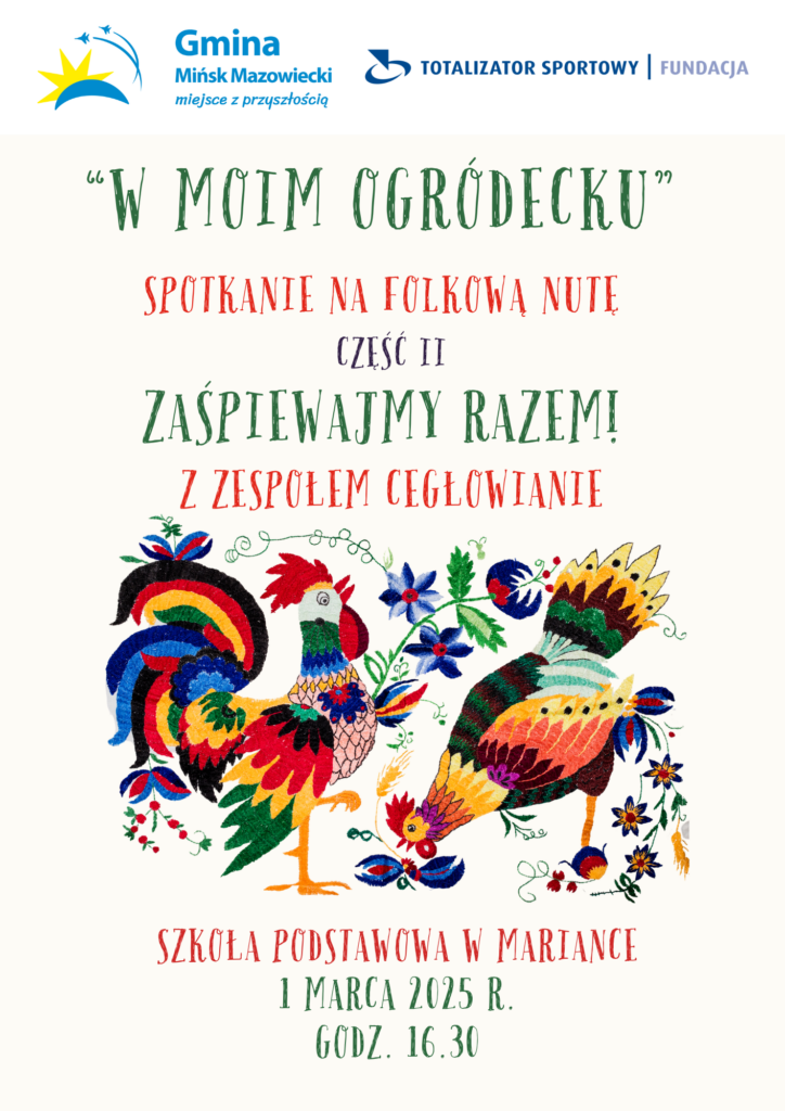 Tym razem pod hasłem „Zaśpiewajmy razem!” ponownie zanurzymy się w klimacie muzyki folkowej. Wspólnie z Zespołem Cegłowianie stworzymy niezapomnianą atmosferę pełną śpiewu i tradycji!