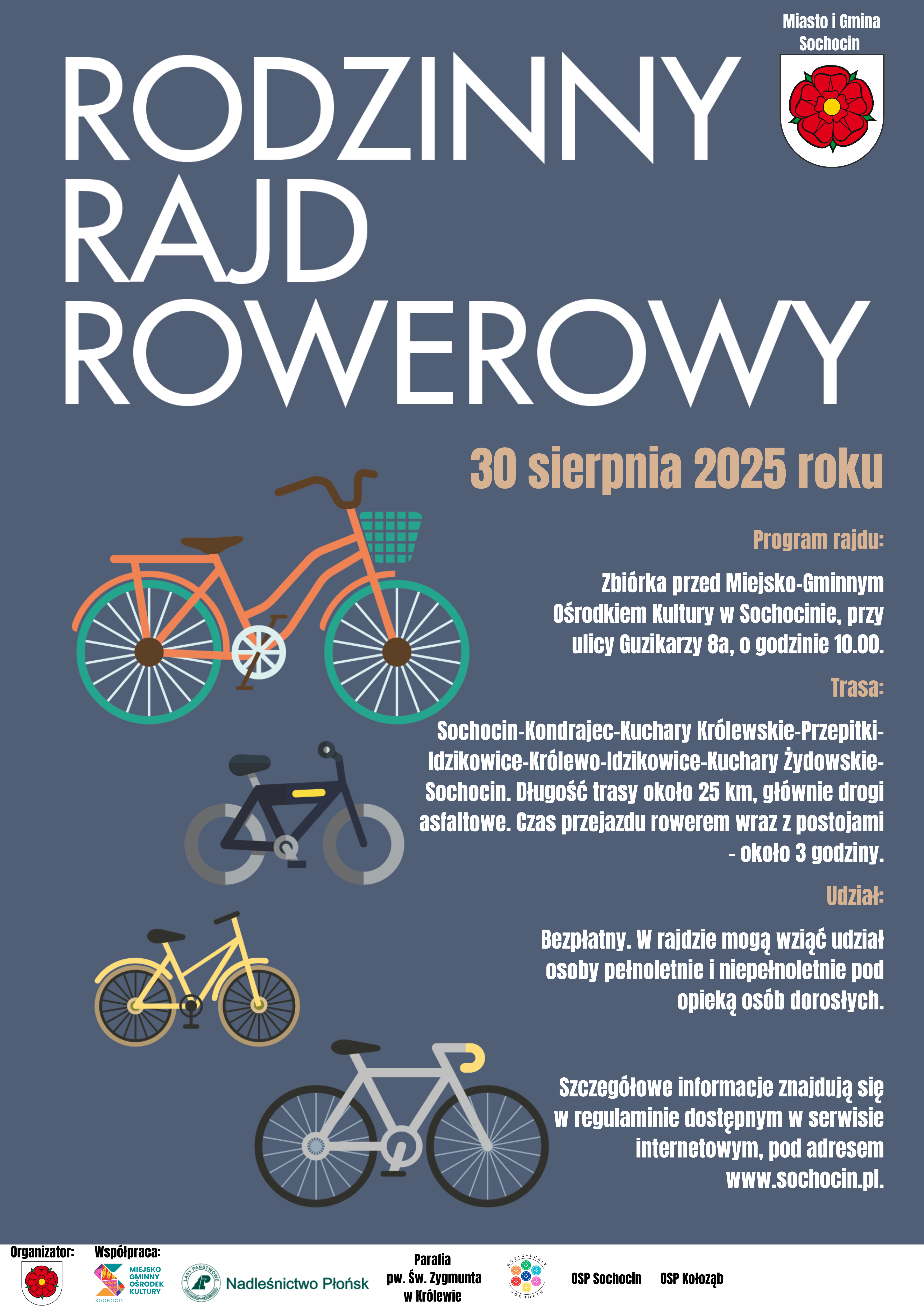 Serdecznie zapraszamy do udziału w „Rodzinnym Rajdzie Rowerowym 2025”. Rajd ma charakter rekreacyjno-turystyczny.